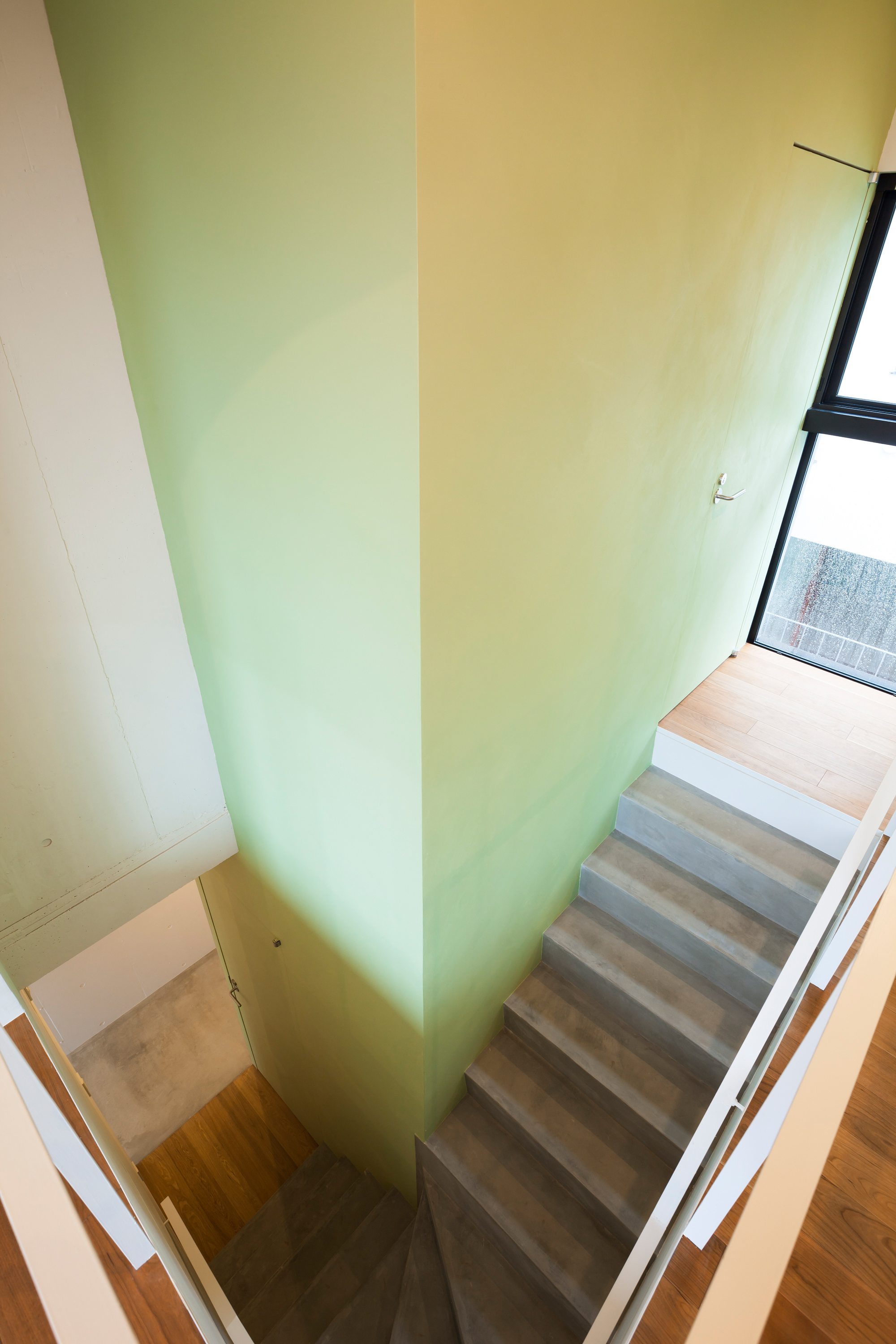 Unit D is a maisonette unit with light green wall accents.