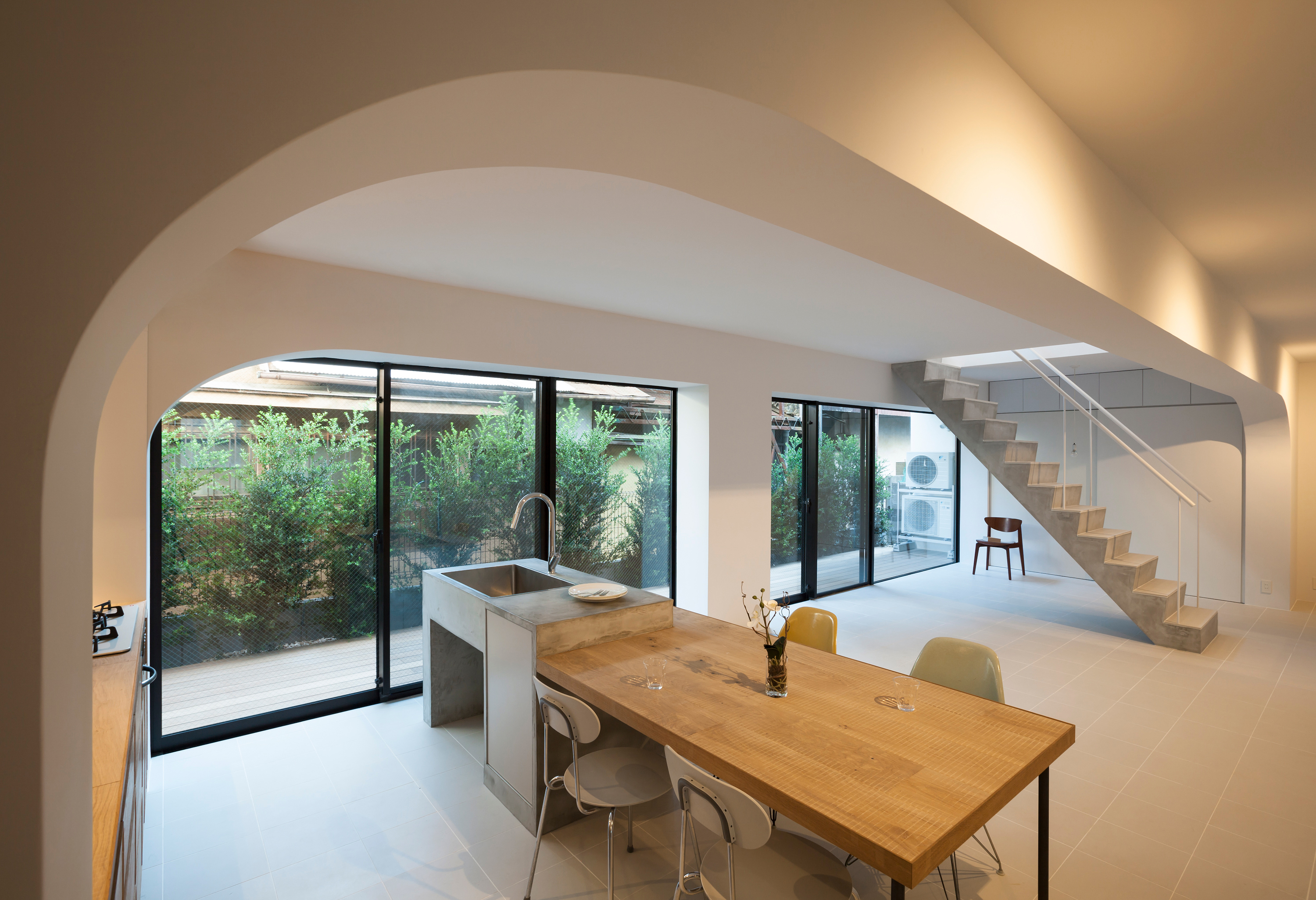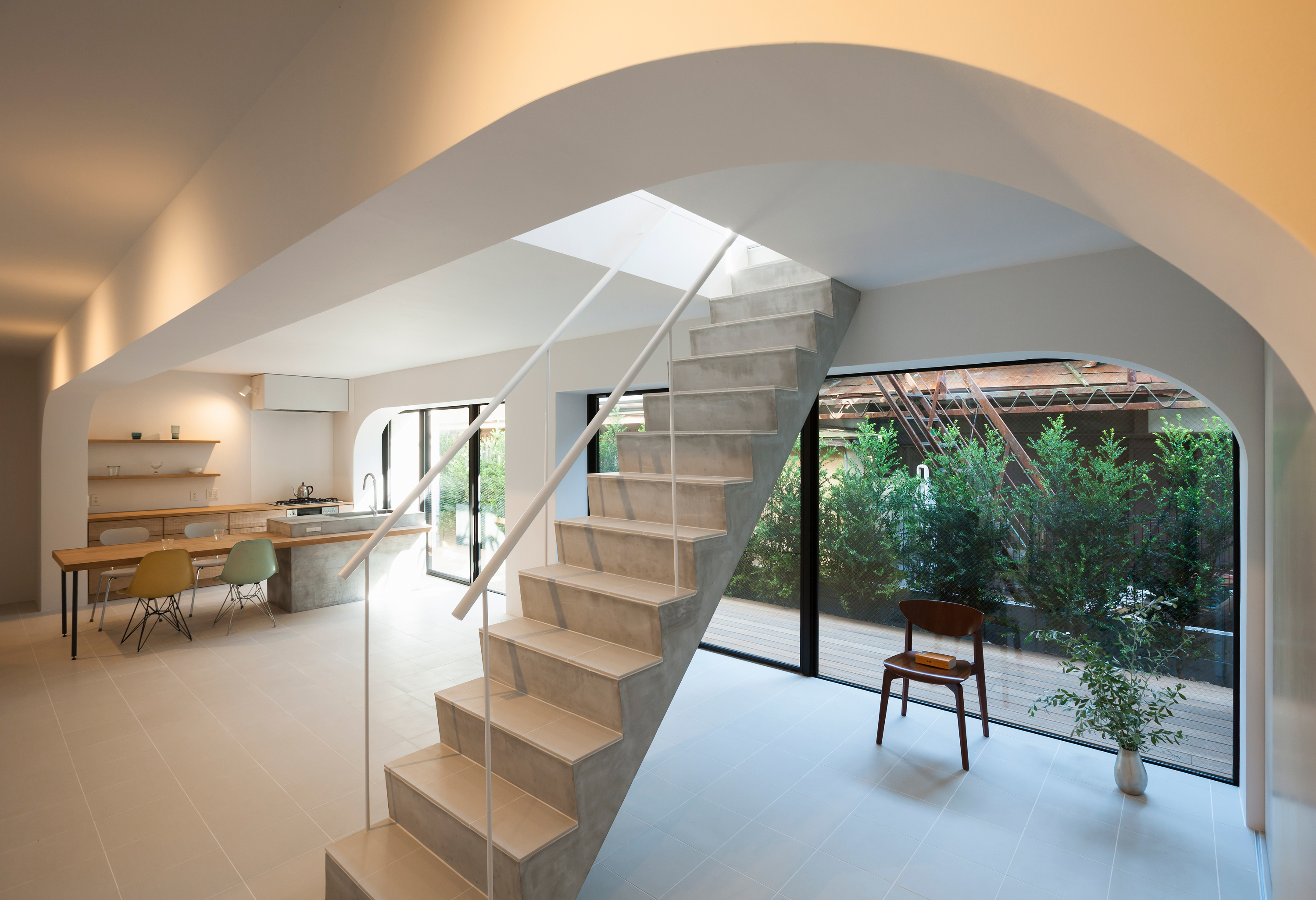 In this project, the skeleton plan was drawn up first after which the interior design of each individual unit was developed together with the future residents. The units are arranged so that each unit has a large frontage facing south. In order to maximize this frontage and increase the wall span of each unit, arched concrete structures are used. This structure frame has become the main aesthetic feature of the building; defining both the exterior façades and interior spaces.