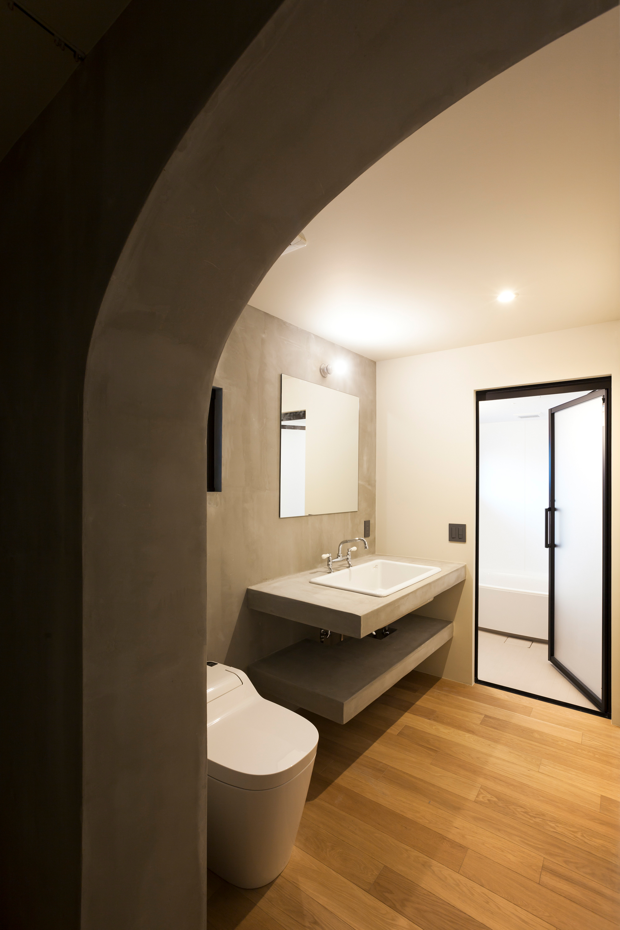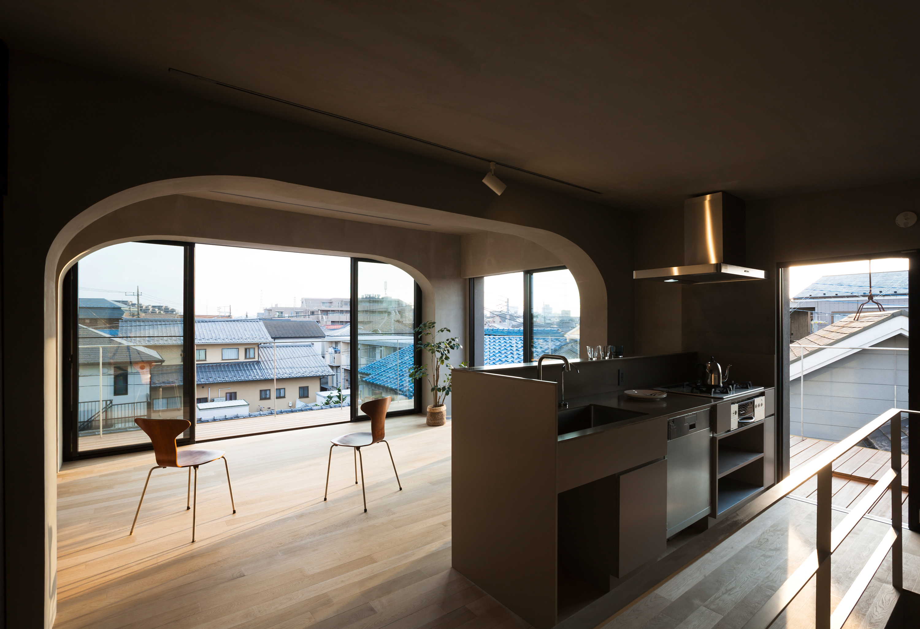 In this project, the skeleton plan was drawn up first after which the interior design of each individual unit was developed together with the future residents. The units are arranged so that each unit has a large frontage facing south. In order to maximize this frontage and increase the wall span of each unit, arched concrete structures are used. This structure frame has become the main aesthetic feature of the building; defining both the exterior façades and interior spaces.