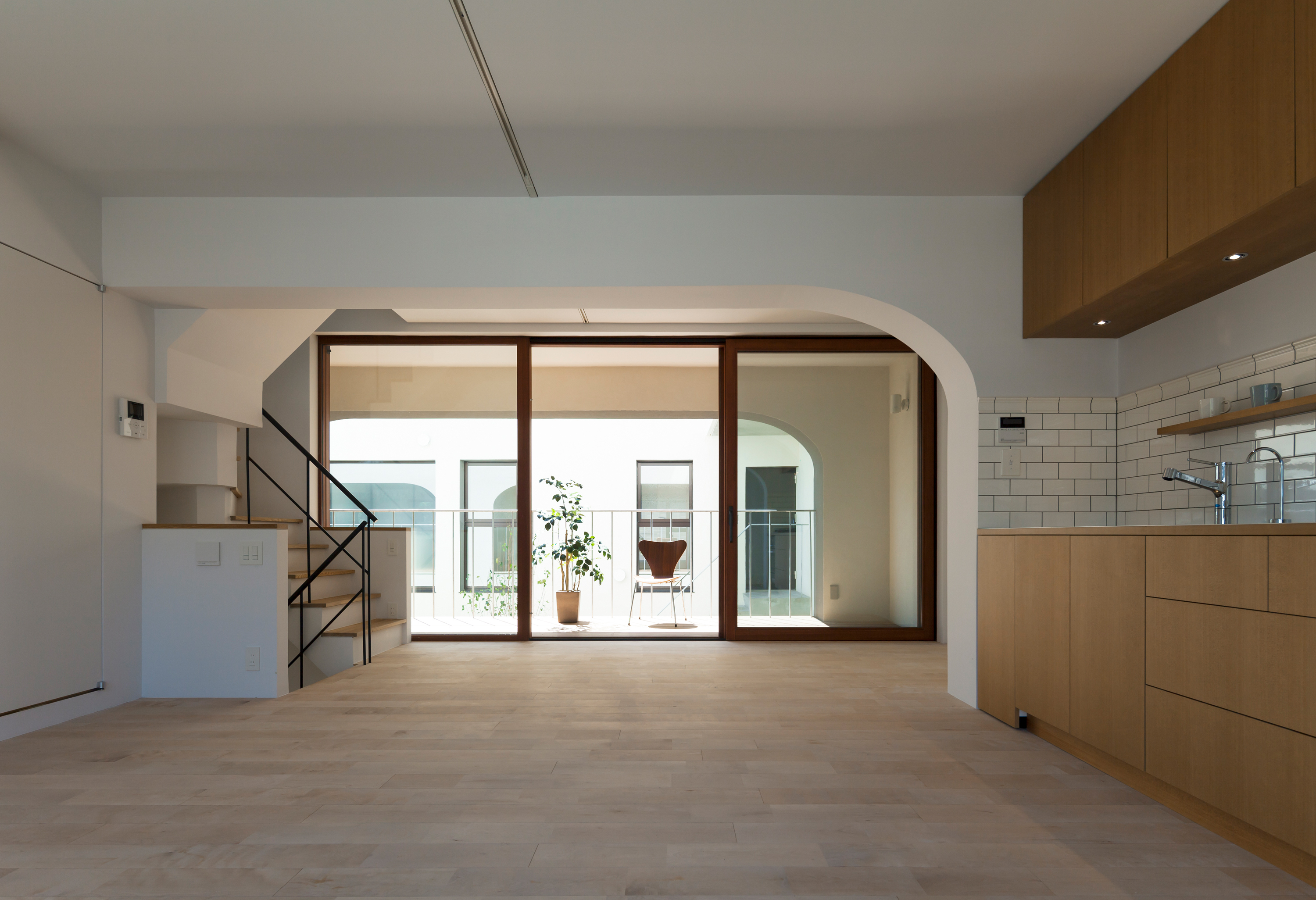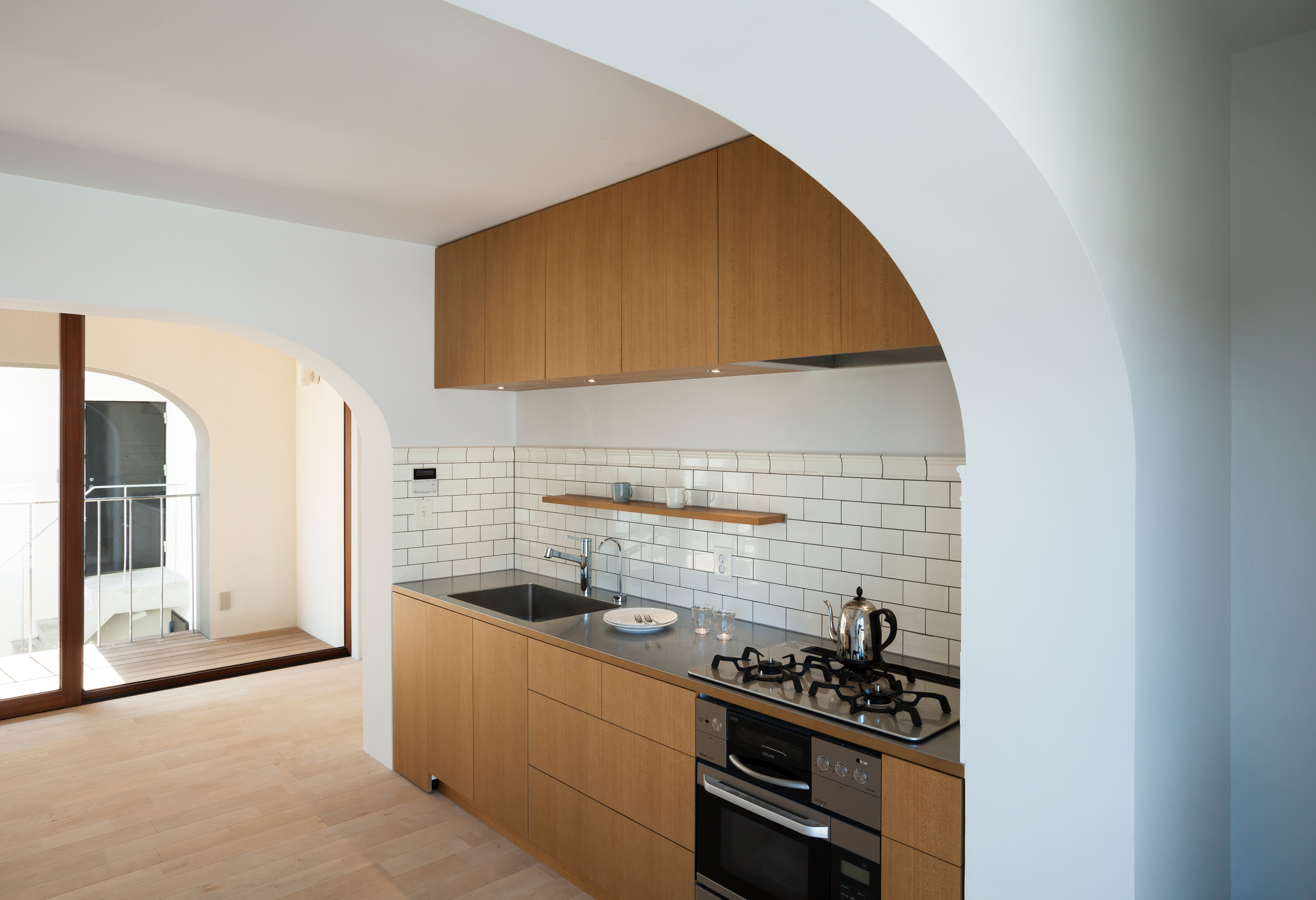 In this project, the skeleton plan was drawn up first after which the interior design of each individual unit was developed together with the future residents. The units are arranged so that each unit has a large frontage facing south. In order to maximize this frontage and increase the wall span of each unit, arched concrete structures are used. This structure frame has become the main aesthetic feature of the building; defining both the exterior façades and interior spaces.