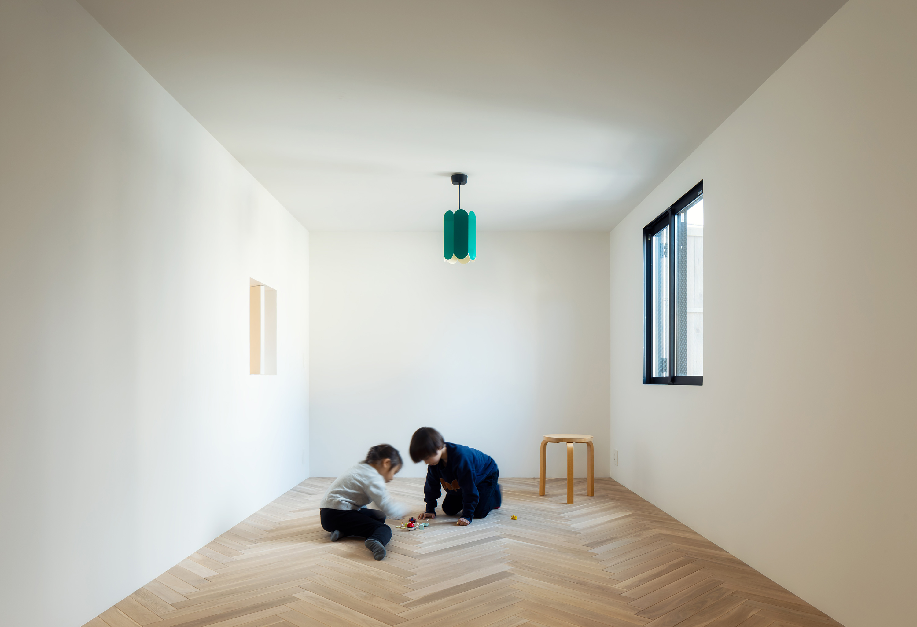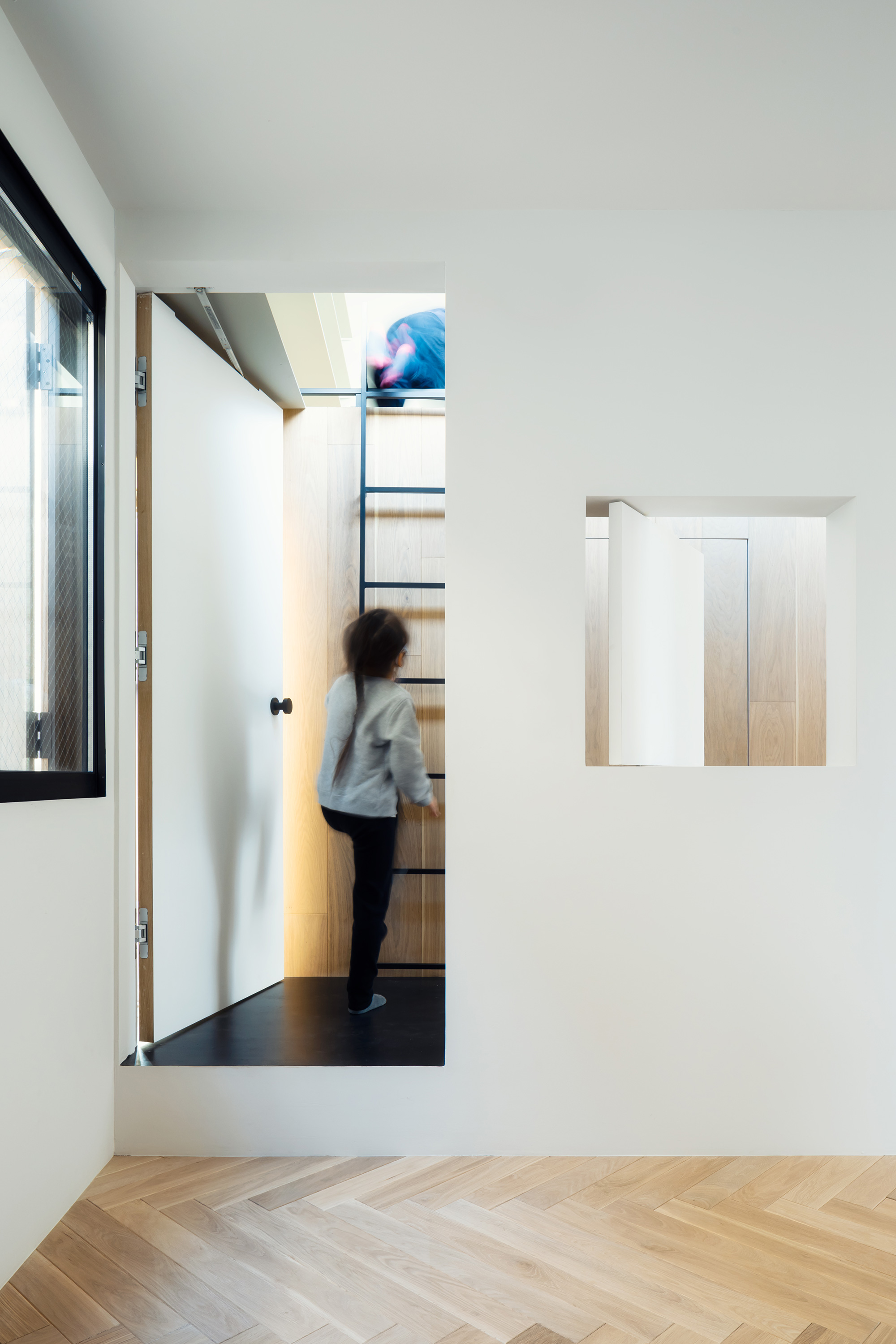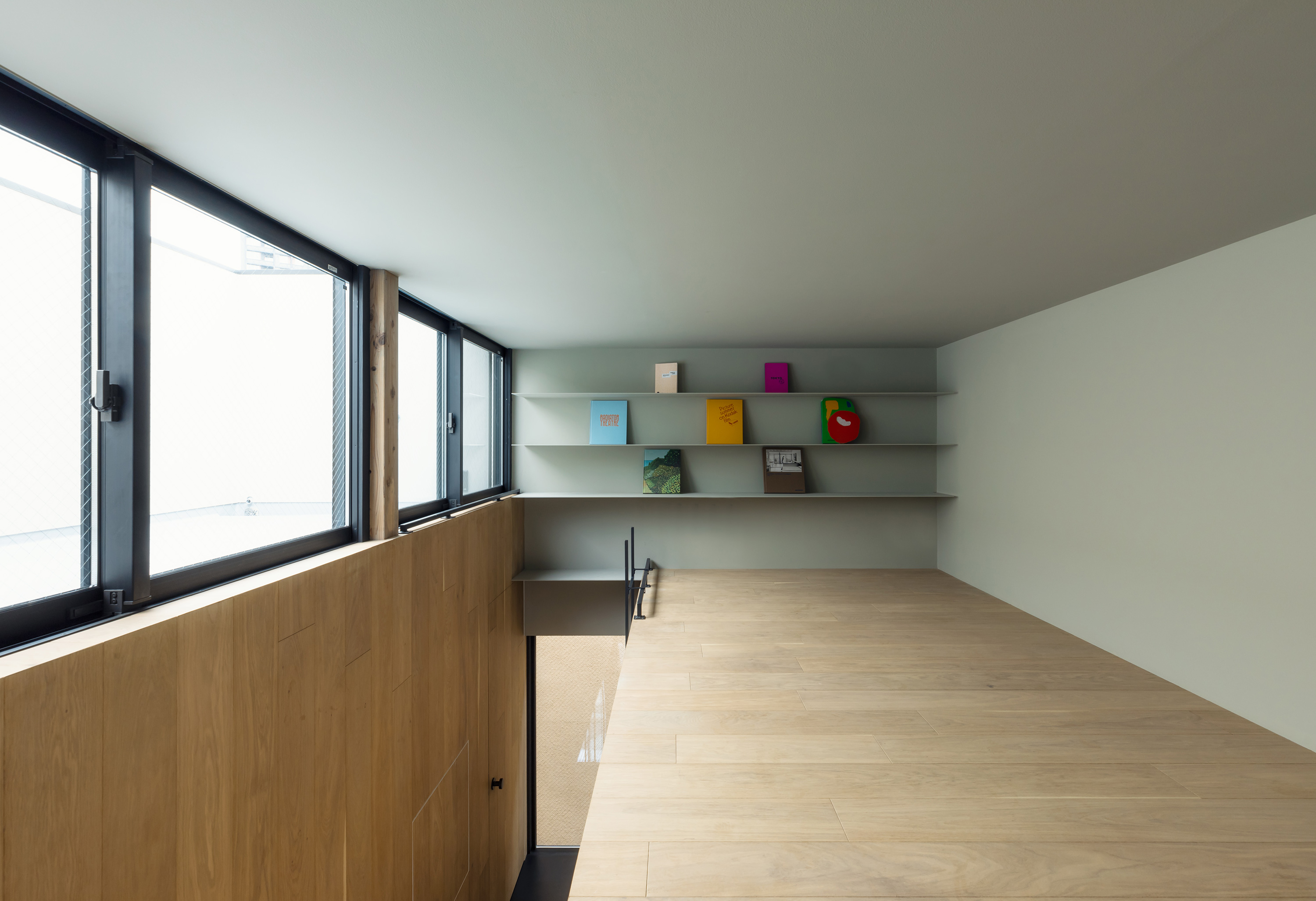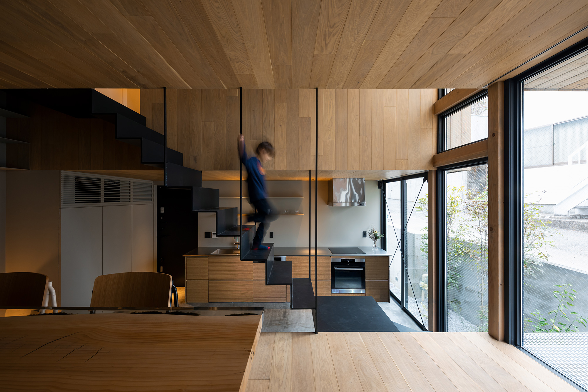 IN-BETWEEN DWELLING is a small single-family house located on a hillside in the Tomigaya area of central Tokyo. The site of the residence is enclosed by neighbouring houses, a rented car park and a private road, leaving a narrow alleyway as the only official access route. Designed for a family of four, the residence is centered around a 6.5m high stairwell that connects all the rooms and brings natural light into the home.