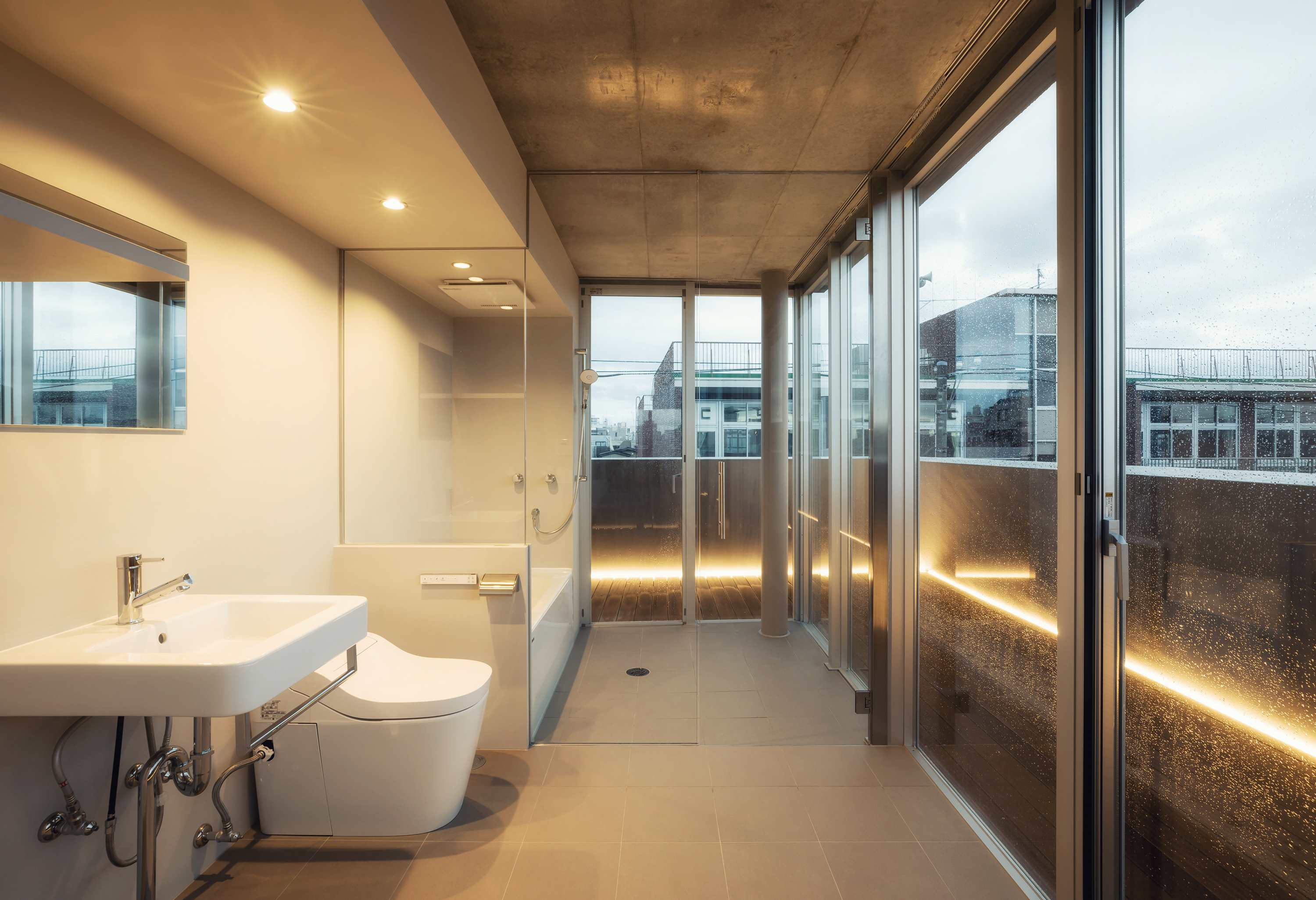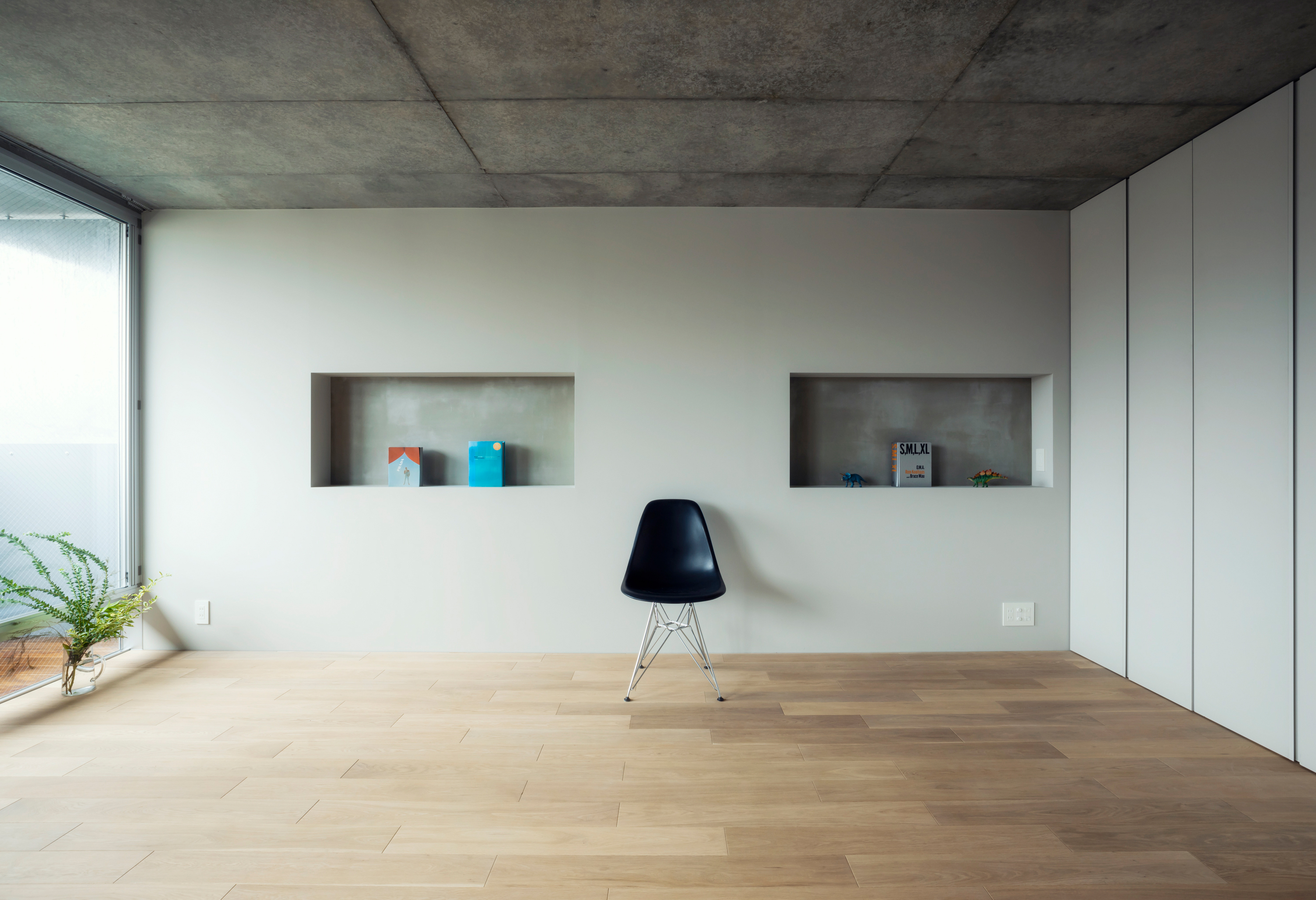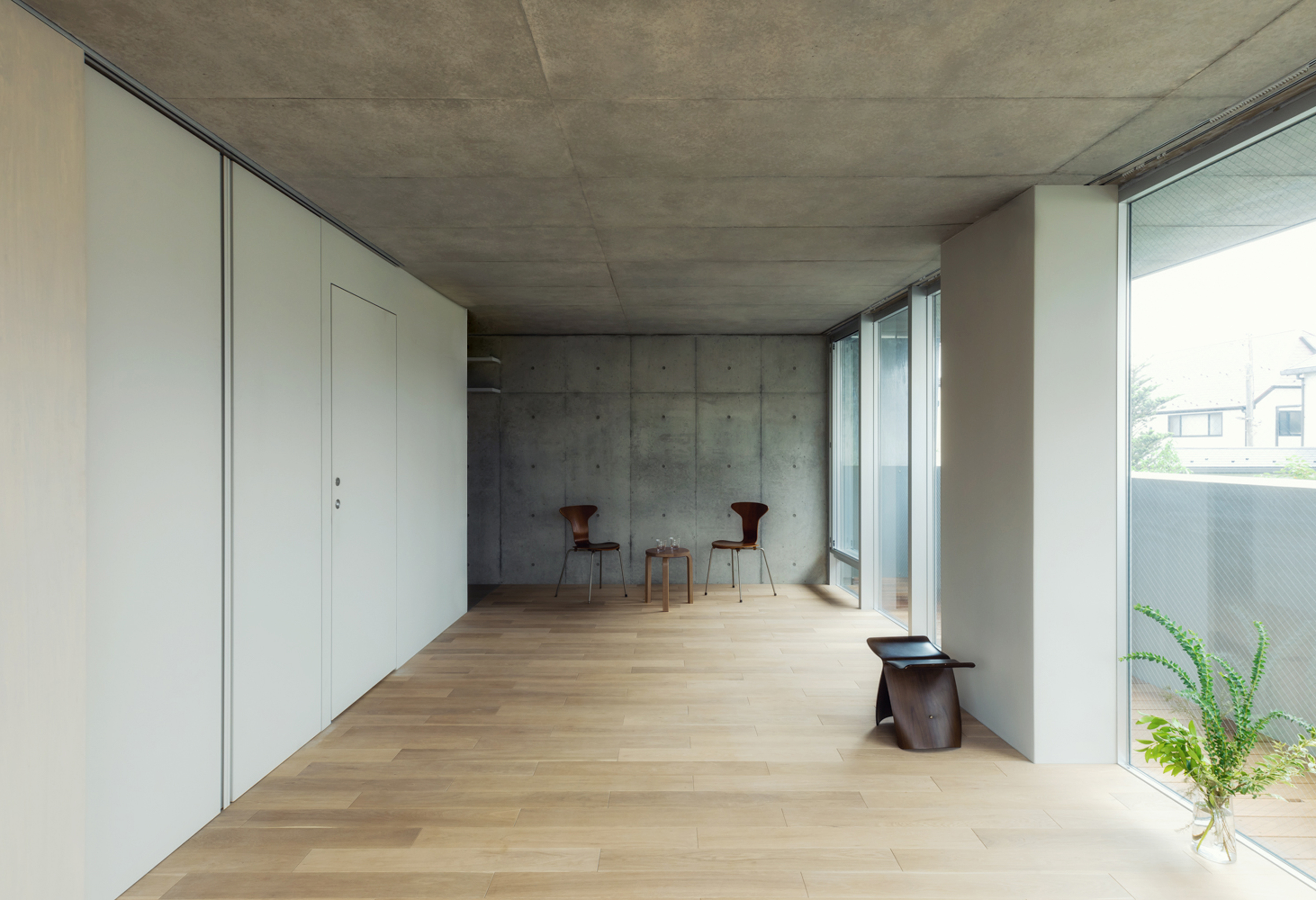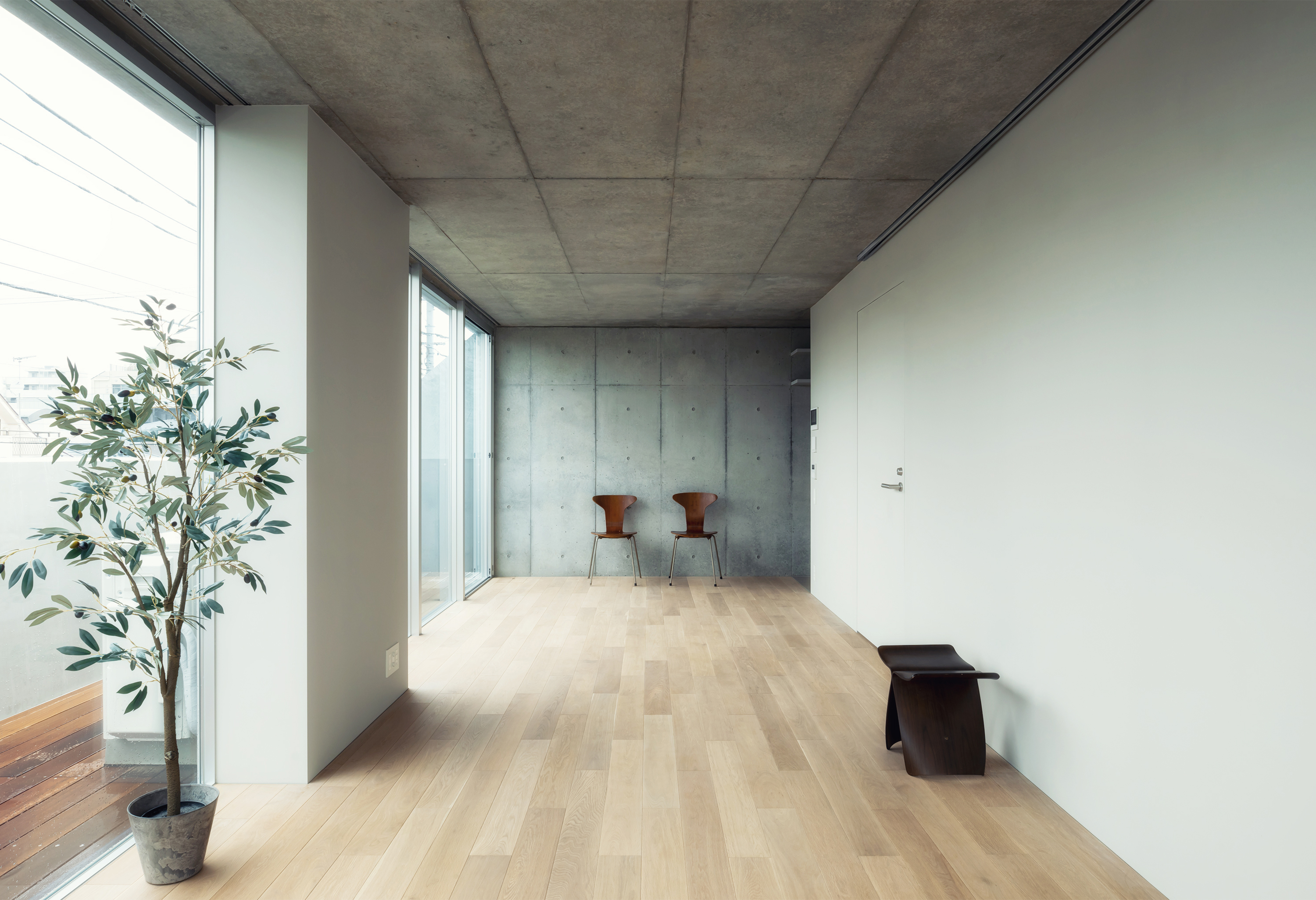 KAJITA APARTMENTS is a 5-story apartment complex located in a quiet residential area in Bunkyo Ward, central Tokyo. The building tries to maximize the rentable volume whilst architecturally adjusting its scale and appearance to the architectural context. By leaving space for an escape route and fire cistern in-between the building and its direct neighbors, all four sides of the building approach their surroundings similarly. Thus, by creating a building with a diamond shaped section in all directions, light is able to reach the surrounding streets and plots whilst simultaneously facilitating space on the ground floor level for lush gardens. This ensures that passerby’s will not see the upper levels directly and creates a privacy barrier between public space, nearby residences and the ground floor apartments. Likewise this shape ensures the perceptible scale difference between the apartment building and its smaller neighbors is reduced. This way the buildings fit’s in snugly with its direct urban surroundings and provides the neighborhood with public green space.