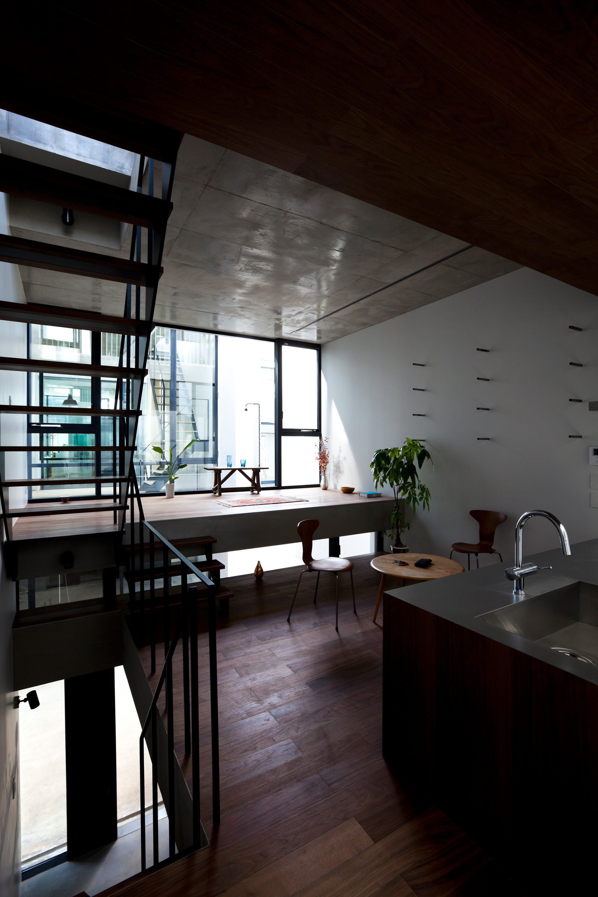 The building is layout around an H-shaped courtyard were the residence are placed on the perimeter of the site and a row in the middle. All units have a unique layout but adhere to the same principle of a terraced typology together forming the townscape of NOIE. During the design process the future inhabitants were able to freely choose the interior layout, floor heights and windows giving the facades their unique and diverse appearance. This freedom has created a wild variety of sections and interiors and expresses the pluriformity and diversity of its individual inhabitants in a very uniform Japanese urban and societal context.