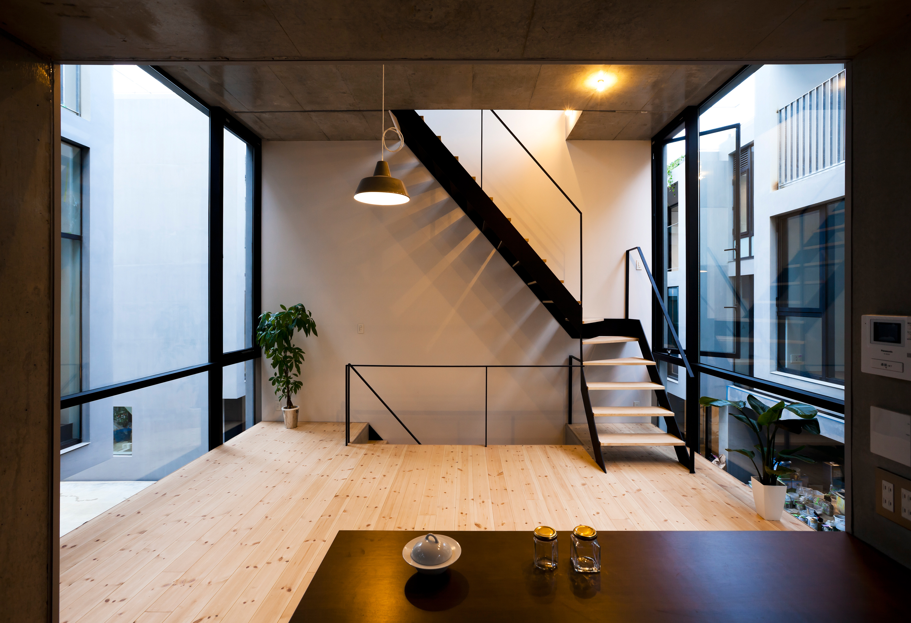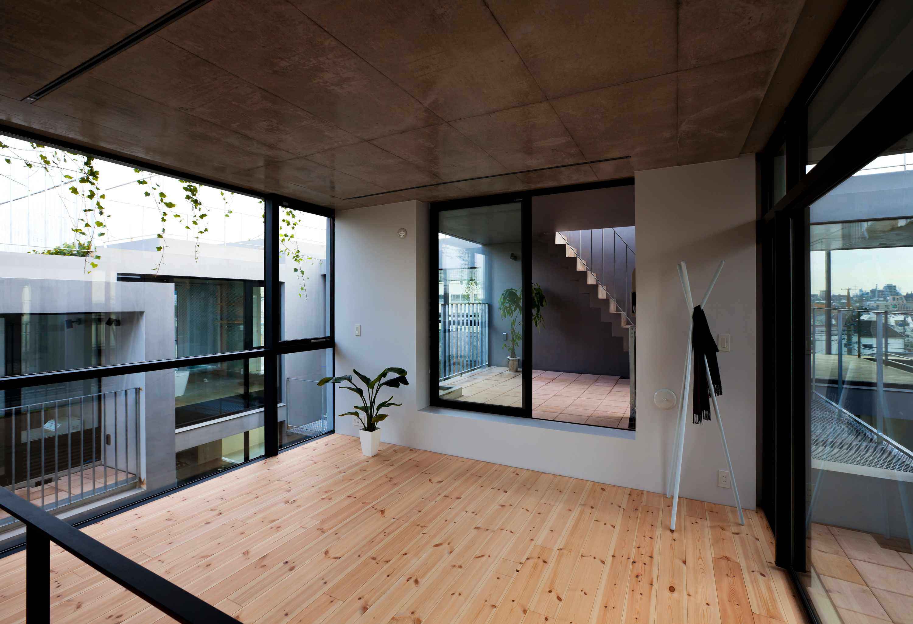 NOIE is a 11-unit cooperative development built as a series of terraced houses and is located in a quiet residential area in central Tokyo. The site itself is directly surrounded on all sides by other residences and can only be accessed through a 20m long public lined with trees and green.