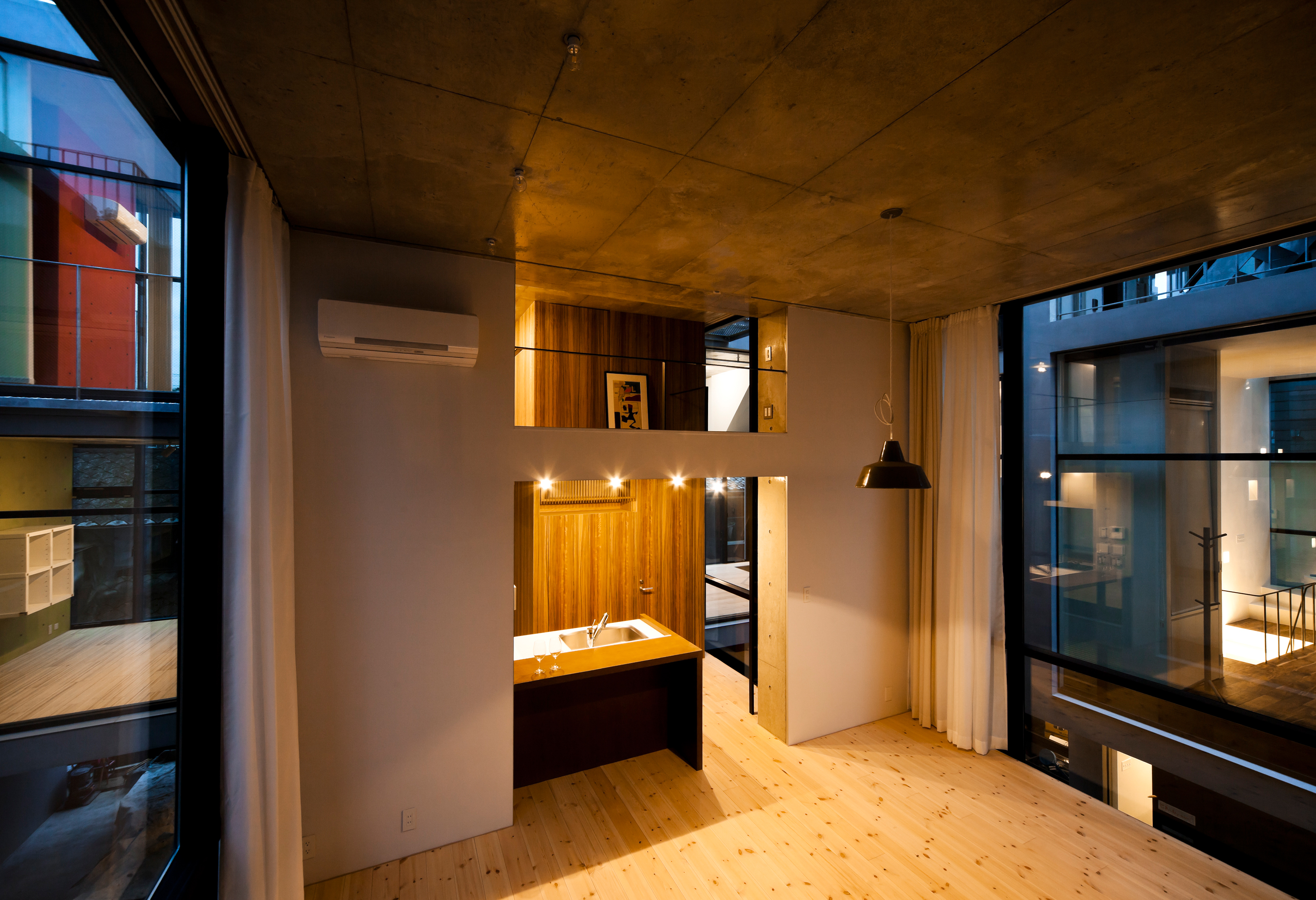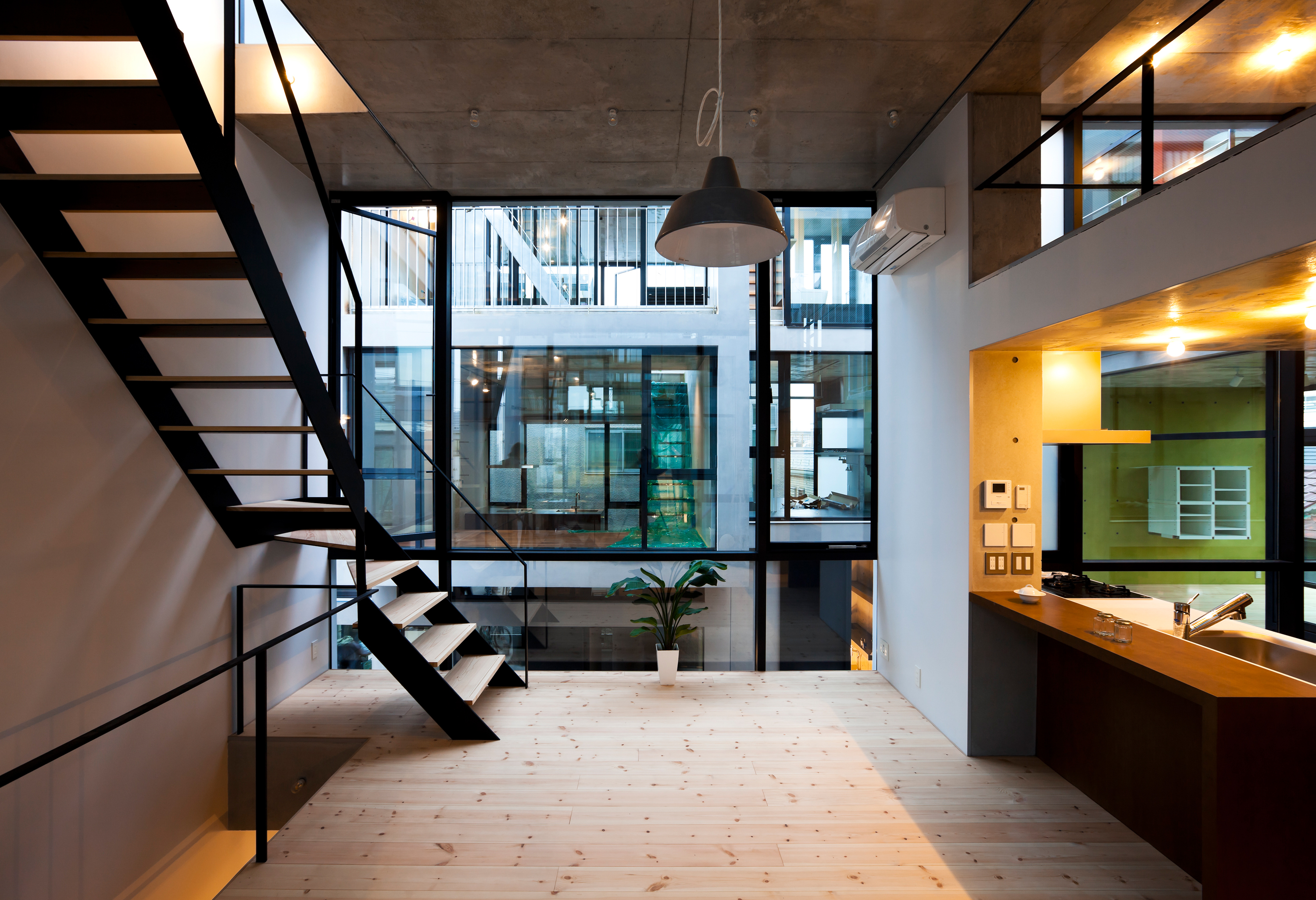The building is layout around an H-shaped courtyard were the residence are placed on the perimeter of the site and a row in the middle. All units have a unique layout but adhere to the same principle of a terraced typology together forming the townscape of NOIE. During the design process the future inhabitants were able to freely choose the interior layout, floor heights and windows giving the facades their unique and diverse appearance. This freedom has created a wild variety of sections and interiors and expresses the pluriformity and diversity of its individual inhabitants in a very uniform Japanese urban and societal context.