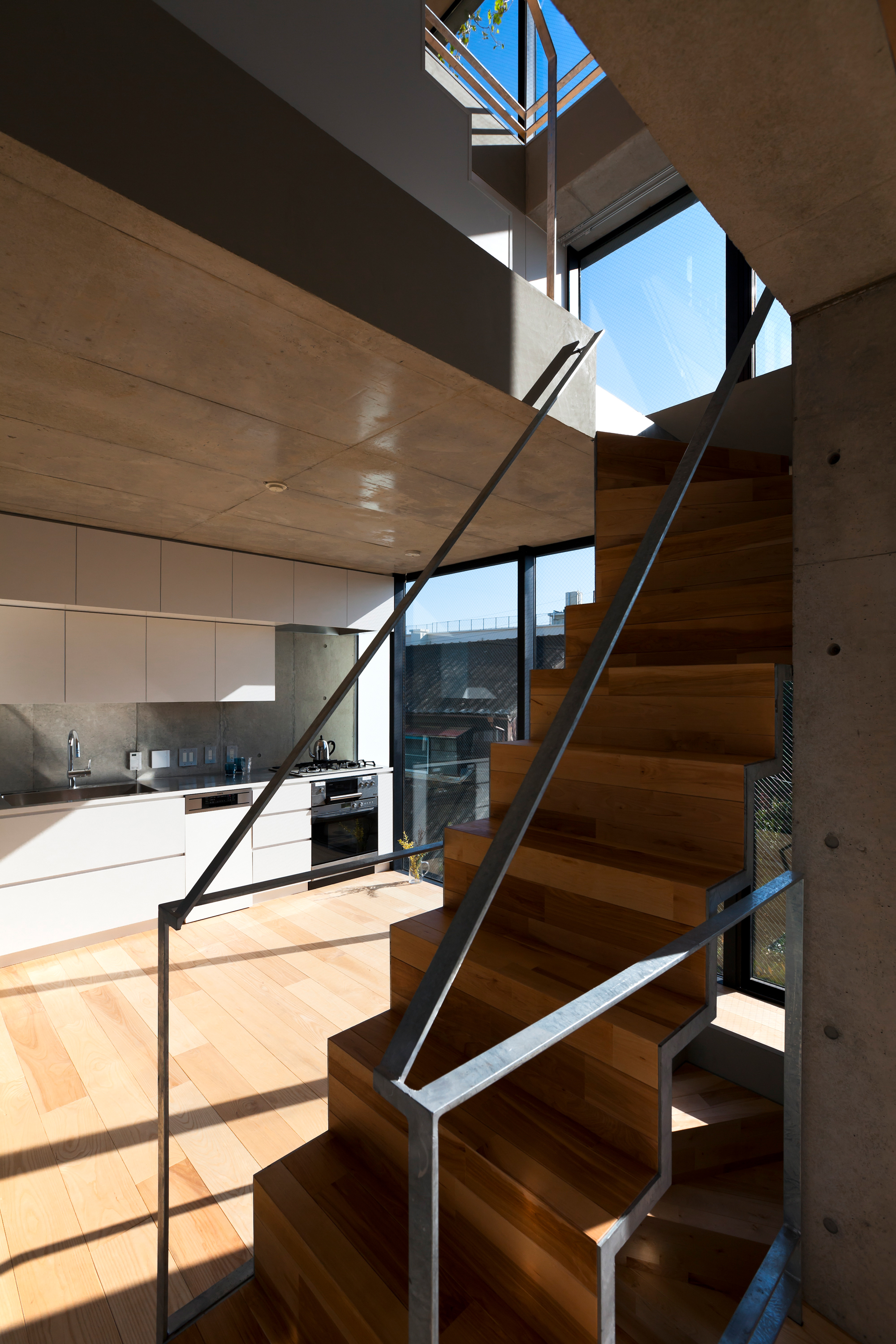The building is layout around an H-shaped courtyard were the residence are placed on the perimeter of the site and a row in the middle. All units have a unique layout but adhere to the same principle of a terraced typology together forming the townscape of NOIE. During the design process the future inhabitants were able to freely choose the interior layout, floor heights and windows giving the facades their unique and diverse appearance. This freedom has created a wild variety of sections and interiors and expresses the pluriformity and diversity of its individual inhabitants in a very uniform Japanese urban and societal context.
