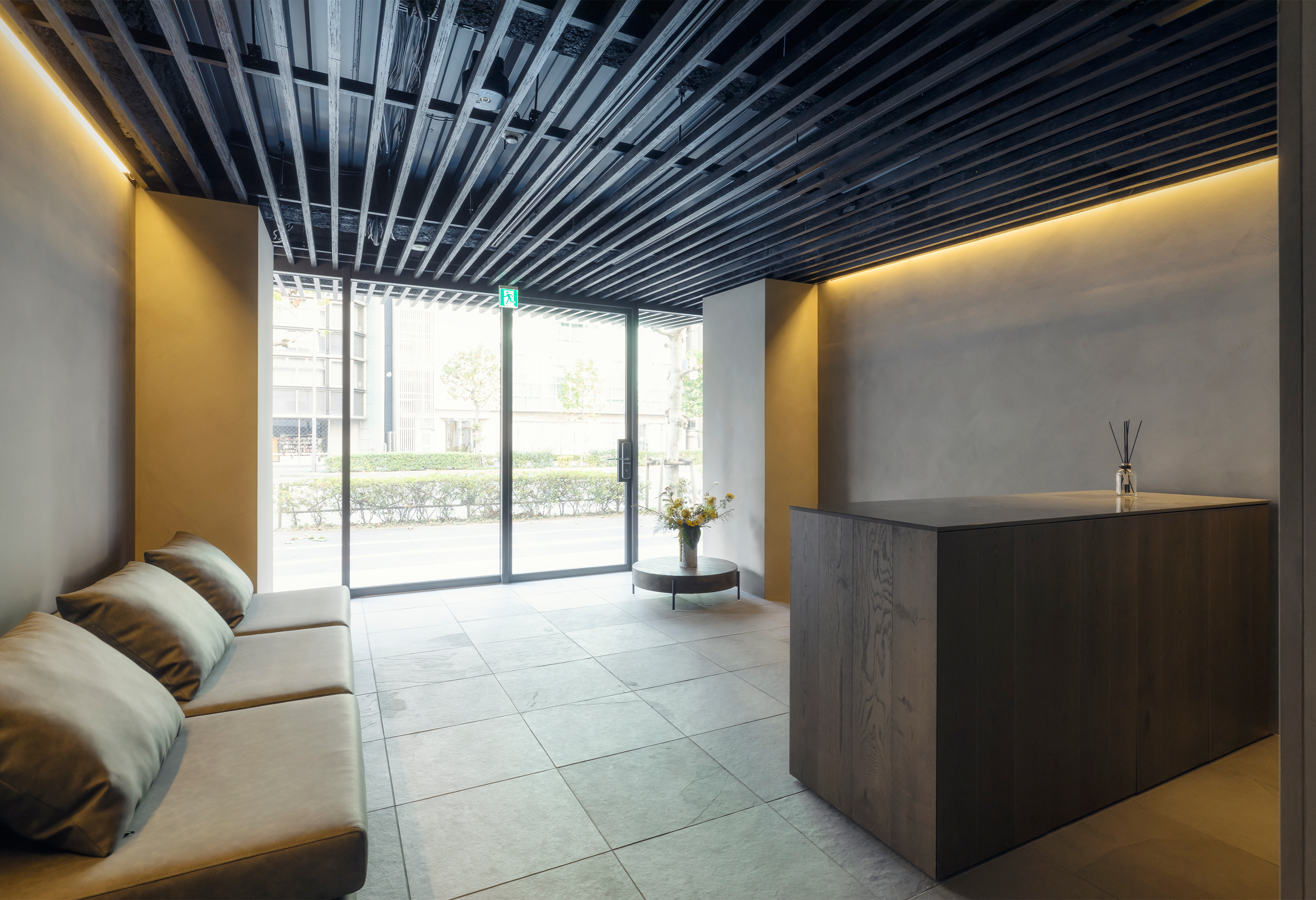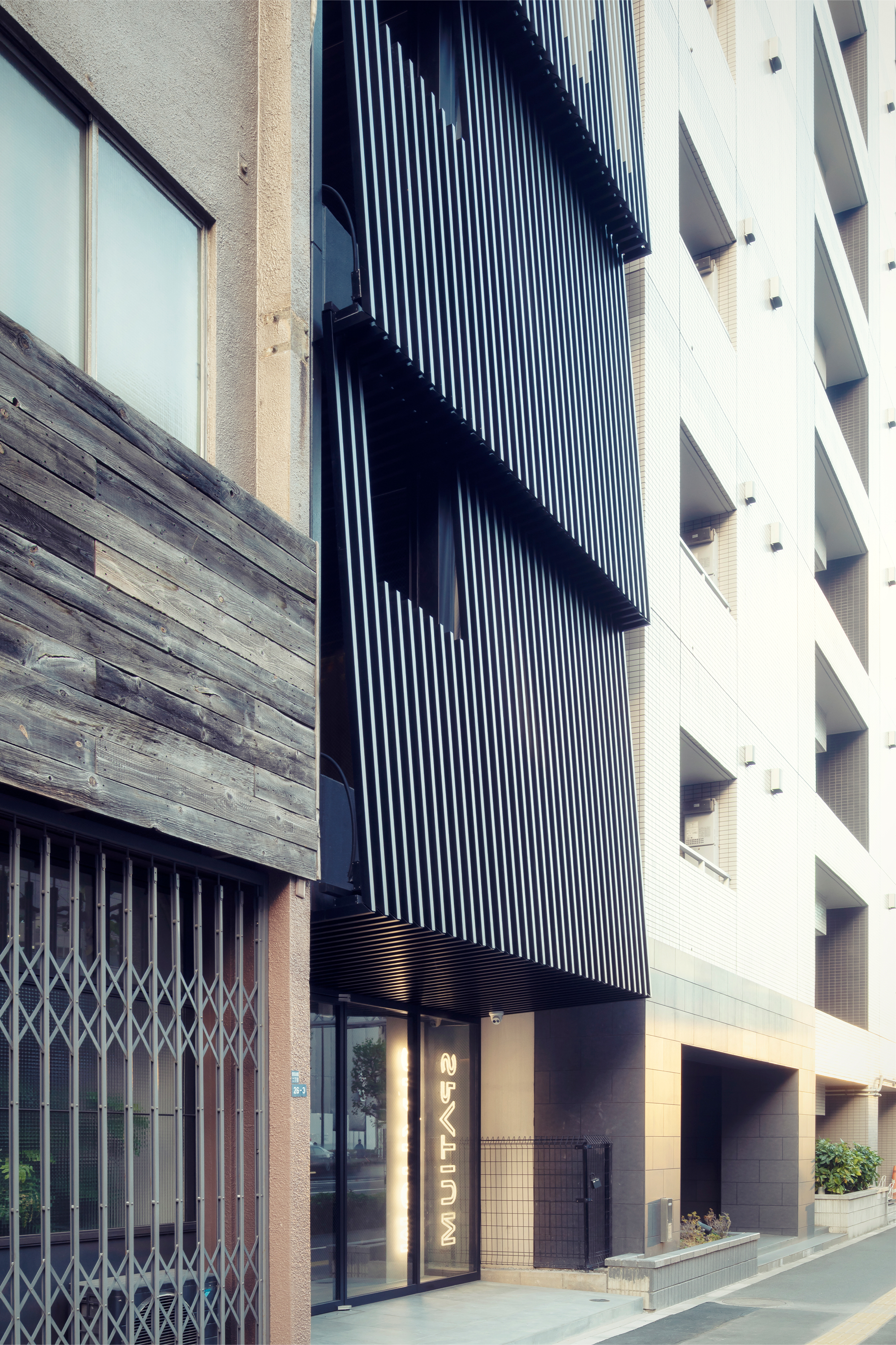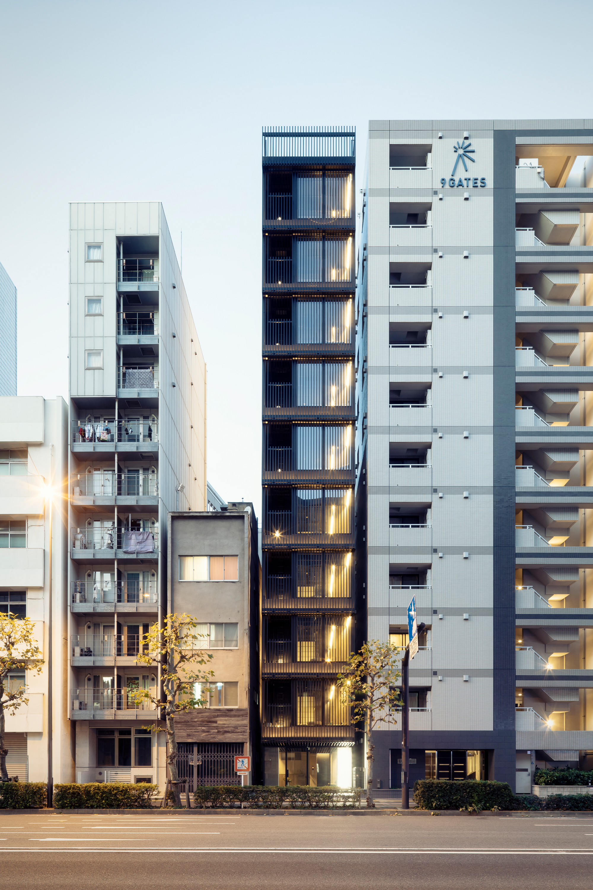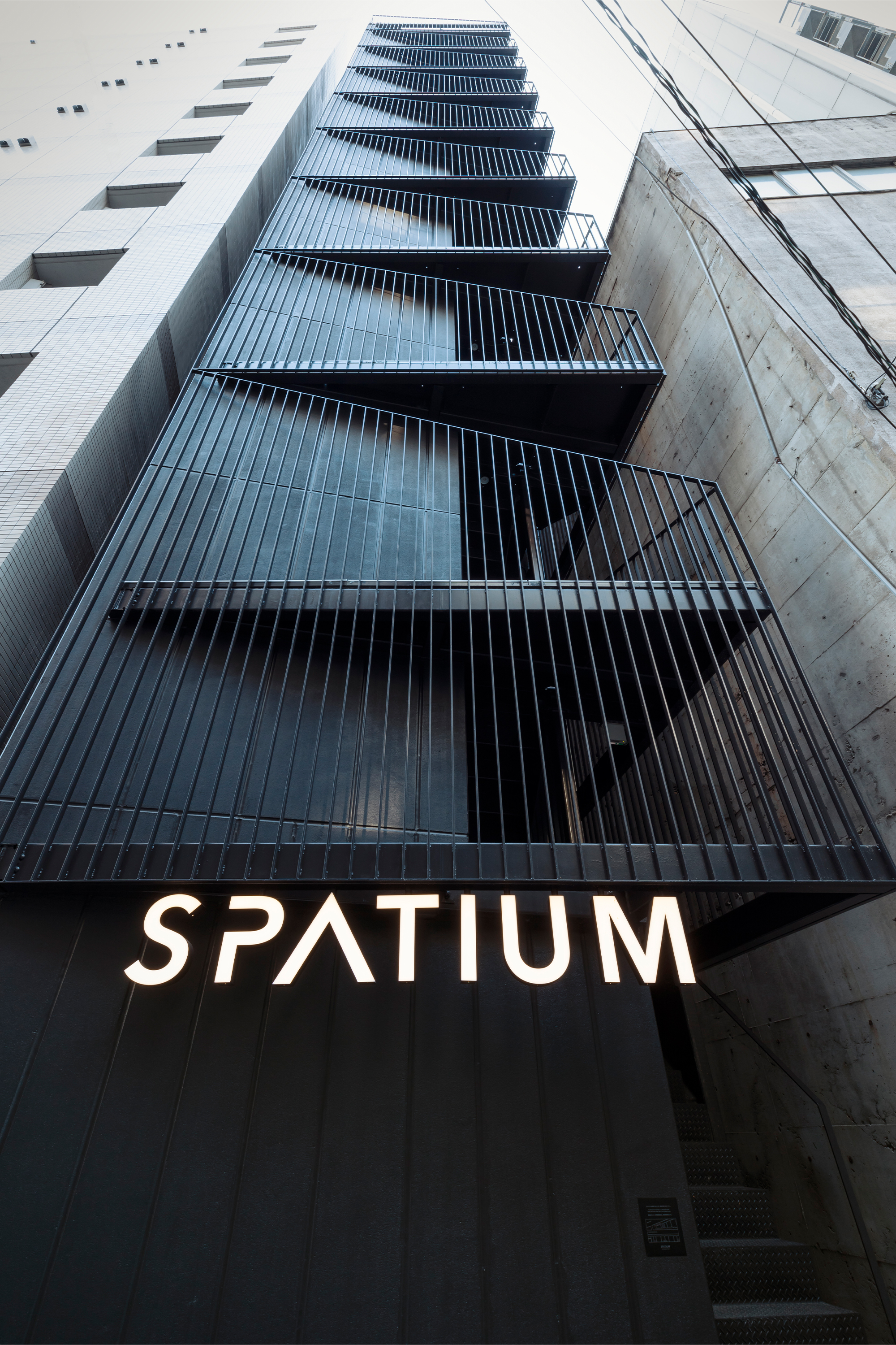 SPATIUM NIHONBASHI EAST is located in central Tokyo. Set only a short walk from the Sumida river and within close reach of numerous tourist areas and attractions, the location is highly appealing for tourist. The boutique hotel is located on small narrow plot and can be categorized as a Pencil Building, a typology emblematic of the dense urban structure of central Tokyo. In this case the plot measures a mere 5m wide by 12m deep, whilst the buildings 9 floors reach a height of 31m.