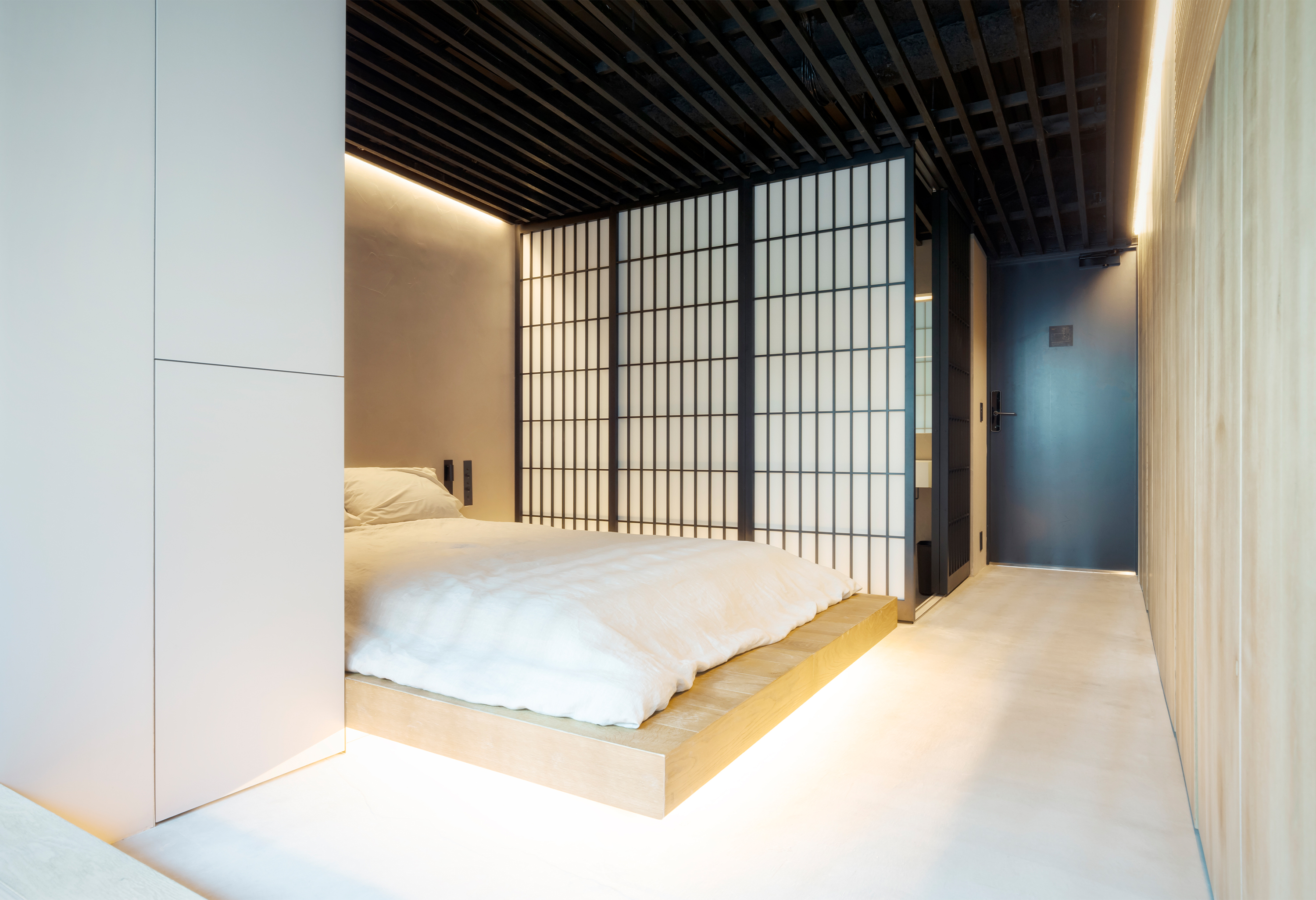 The Design aims to deliver an authentic experience to tourists and immerse them in a space inspired by Japanese Ryokan. The design combines both esthetic and functional elements associated with this traditional architecture. The 3 different room-types are lined with quintessentially Japanese materials; wood, mortar, tatami mats and shoji. By these means guests may find a tranquil resting space in their visit of Tokyo that connects modern Japan with its esthetic roots.