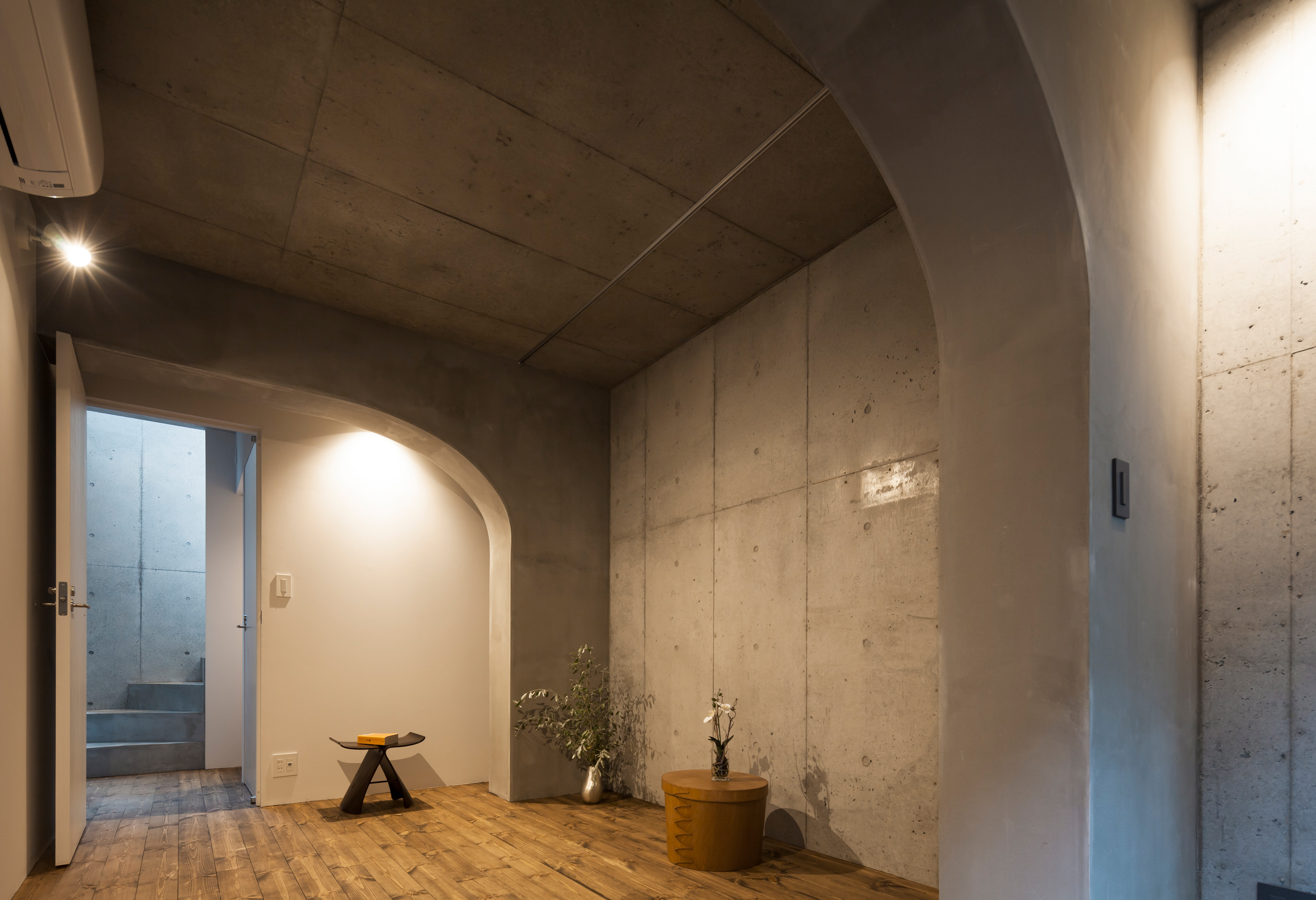 計画の段階からクライアントの要望を実現すべく、間取り・素材およびディテールに至るまできめ細かくインフィル設計を行いました。空間を特徴づけるアーチと広い間口を生かしつつ、各住戸全く事なる雰囲気の空間になりました。