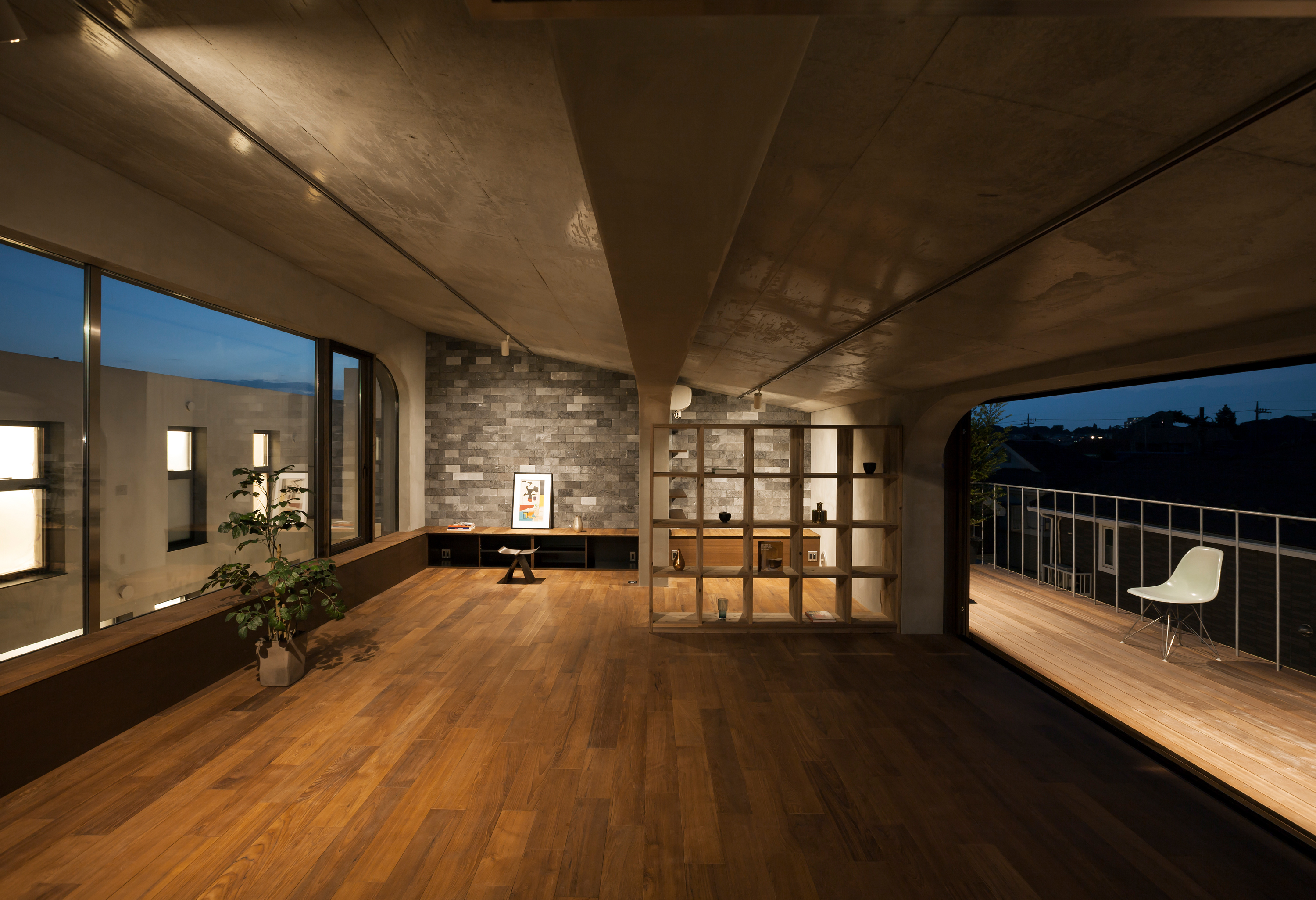 南側開口と豊かなテラスをテーマに、各住戸南向きの大間口の空間を持つよう住戸配置を行いました。面積等の諸条件から間口が各階ずれて重なるような断面形状とし、それを実現する構造形式としてアーチ型のコンクリート構造を採用しました。このアーチがファサードやインテリア空間を特徴づけ、建物のアクセントとなっています。