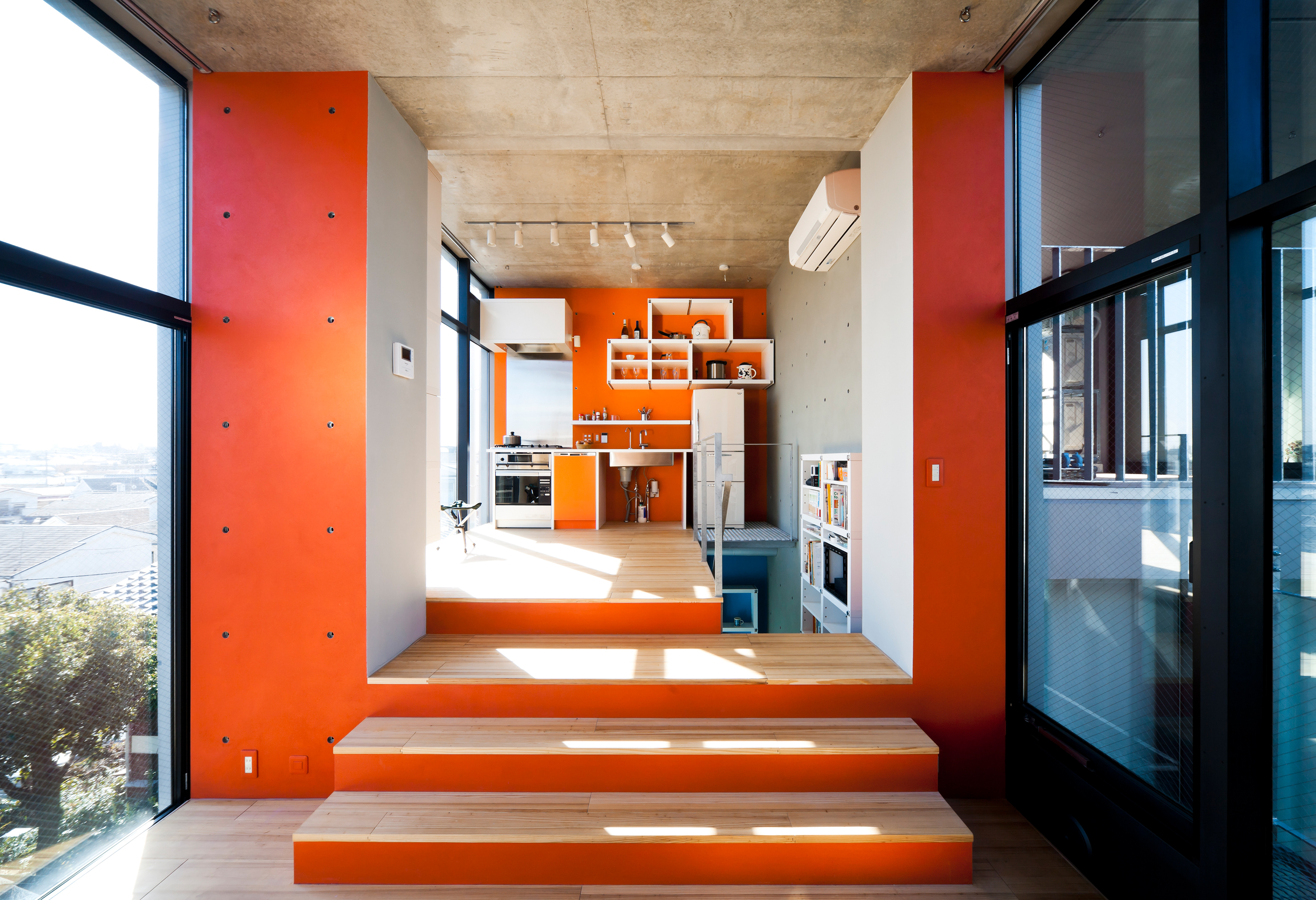 J住戸は、増設できるオープン棚システムを住戸全体に配置し、部屋ごとにテーマカラーをもつ住戸です。