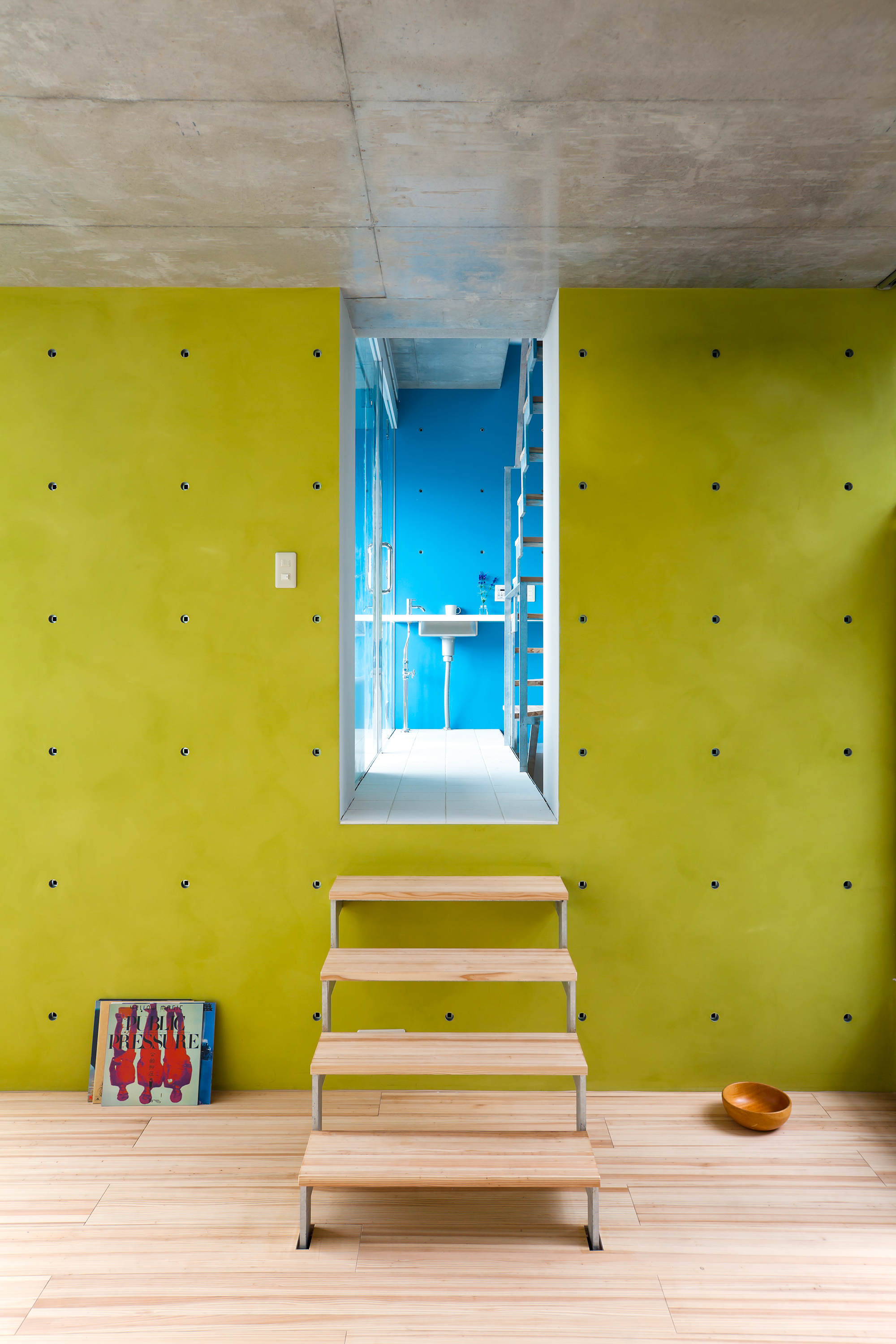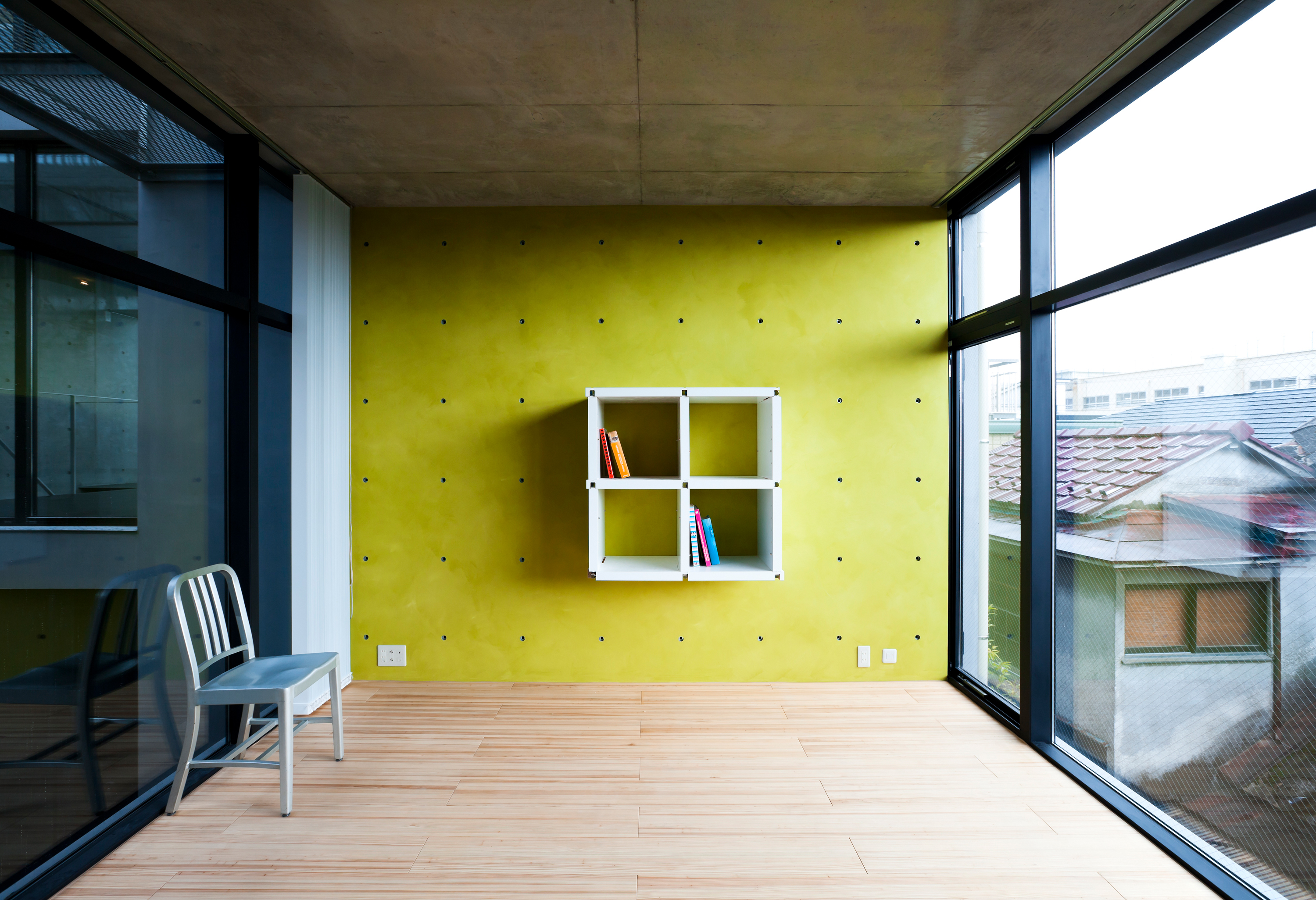 J住戸は、増設できるオープン棚システムを住戸全体に配置し、部屋ごとにテーマカラーをもつ住戸です。