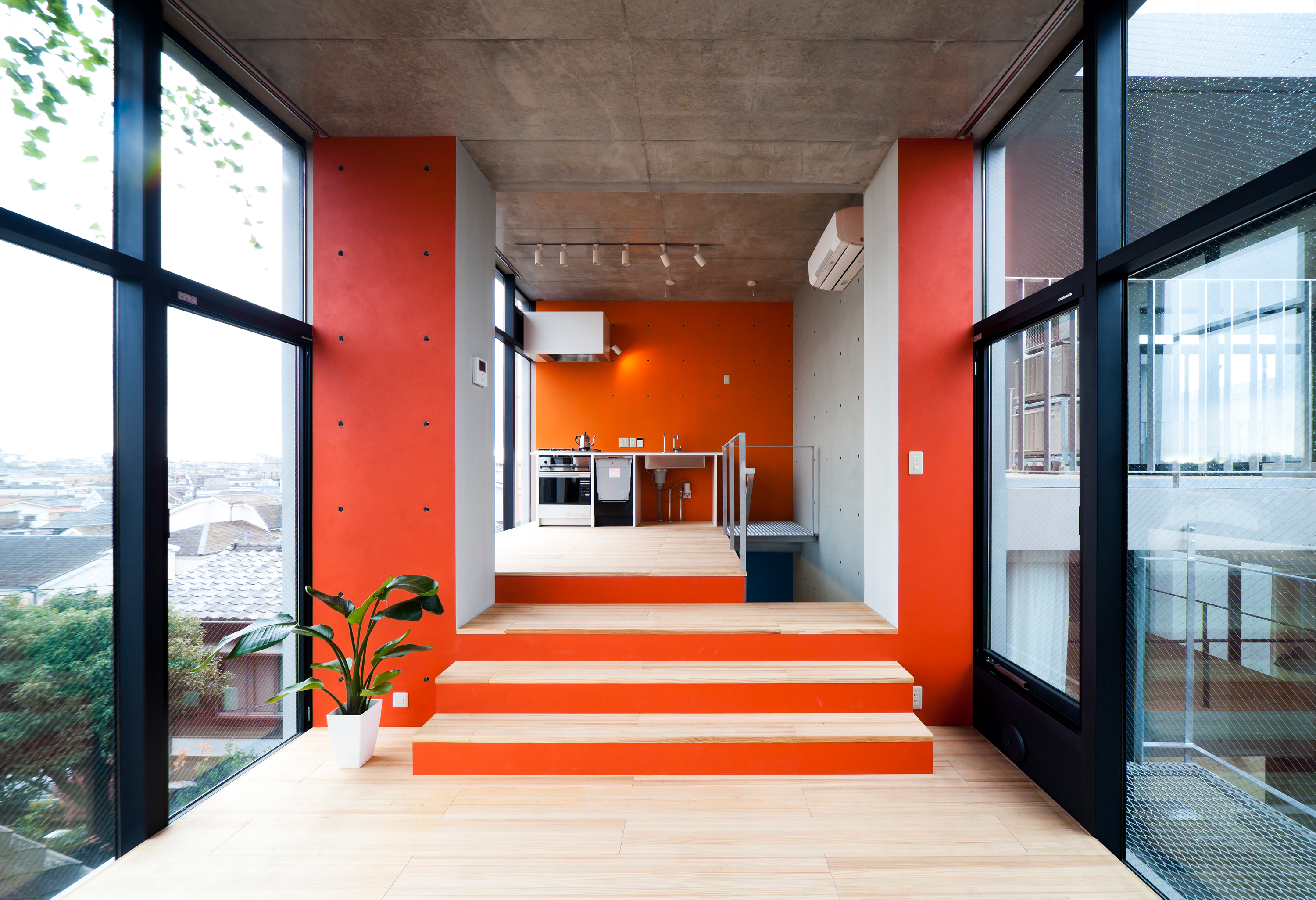 住戸形状は接地型トリプレットとし、異住戸同士が上下重ならない独立性の高い構成としました。計画段階では、住まい手が床レベルも含めて平面・断面を自由に設定できるプログラムとし、それに従い全く異なる表情を持つ11戸の住戸が形成されています。各住戸の間取りに合わせた床レベルの構成がそのまま外観にも表れ、コンクリートスラブの配置とスチールサッシの割付を通してファサードに個性を表し、表情豊かにNOIEの街を彩ります。